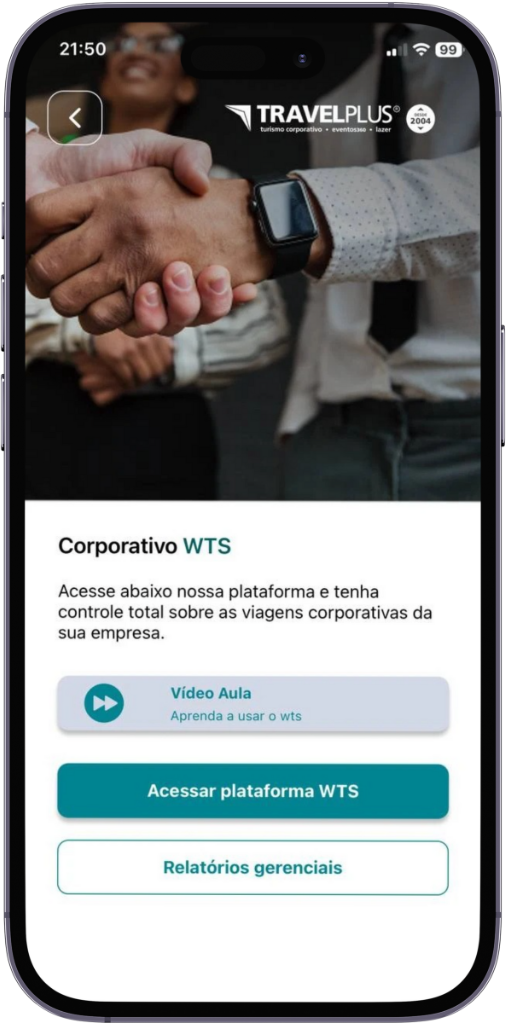 O futuro das viagens corporativas e de lazer na palma da sua mão.