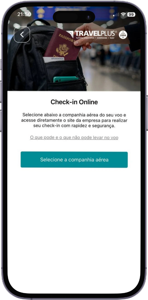 Esquecer de fazer check-in é um problema comum para quem viaja com frequência. Pensando nisso, o aplicativo oferece a possibilidade de realizar o check-in de voos diretamente dentro da plataforma.